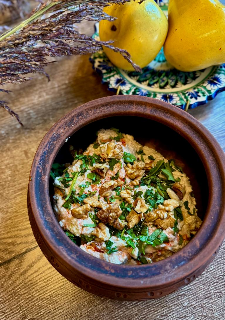 Сочная и ароматная закуска из куриного филе в соусе из грецких орехов, чеснока, грузинских специй и куриного бульона